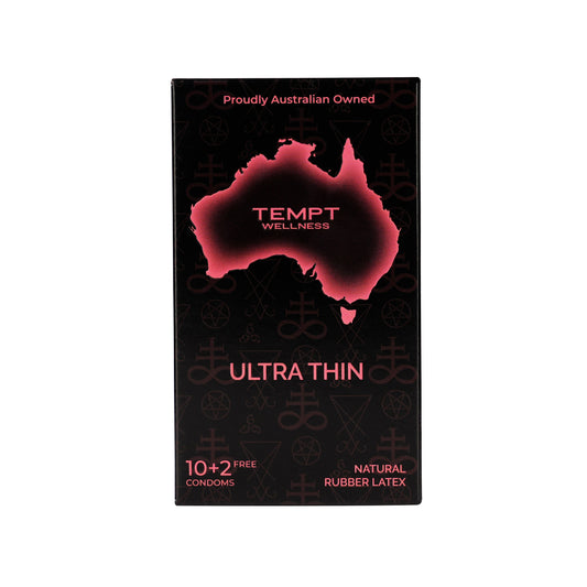 Tempt Wellness Ultra Thin Condoms | 10+2 Free | Premium Natural Rubber Latex | Extra Sensitivity | Australian Owned